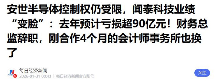 是闻泰科技2025年度预计高达90亿至135亿元人民币的巨额亏损。